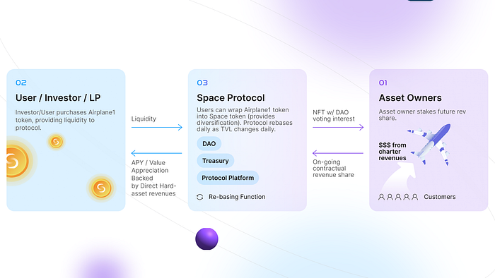 Leveraging NFTs: In Space Protocol, NFTs act as marker of the revenue contributed by Asset Operators. These NFTs enable Asset Operators to submit a loan proposal of the treasury which is then voted upon by the DAO. Asset Operators can only submit a loan proposal up to the value that their NFT reflects in the treasury. Once an Asset Operator submits their loan proposal, the ecosystem’s community can assess the Asset Operator reputation in the ecosystem, their contributions-to-date and vote on whether to approve that loan.